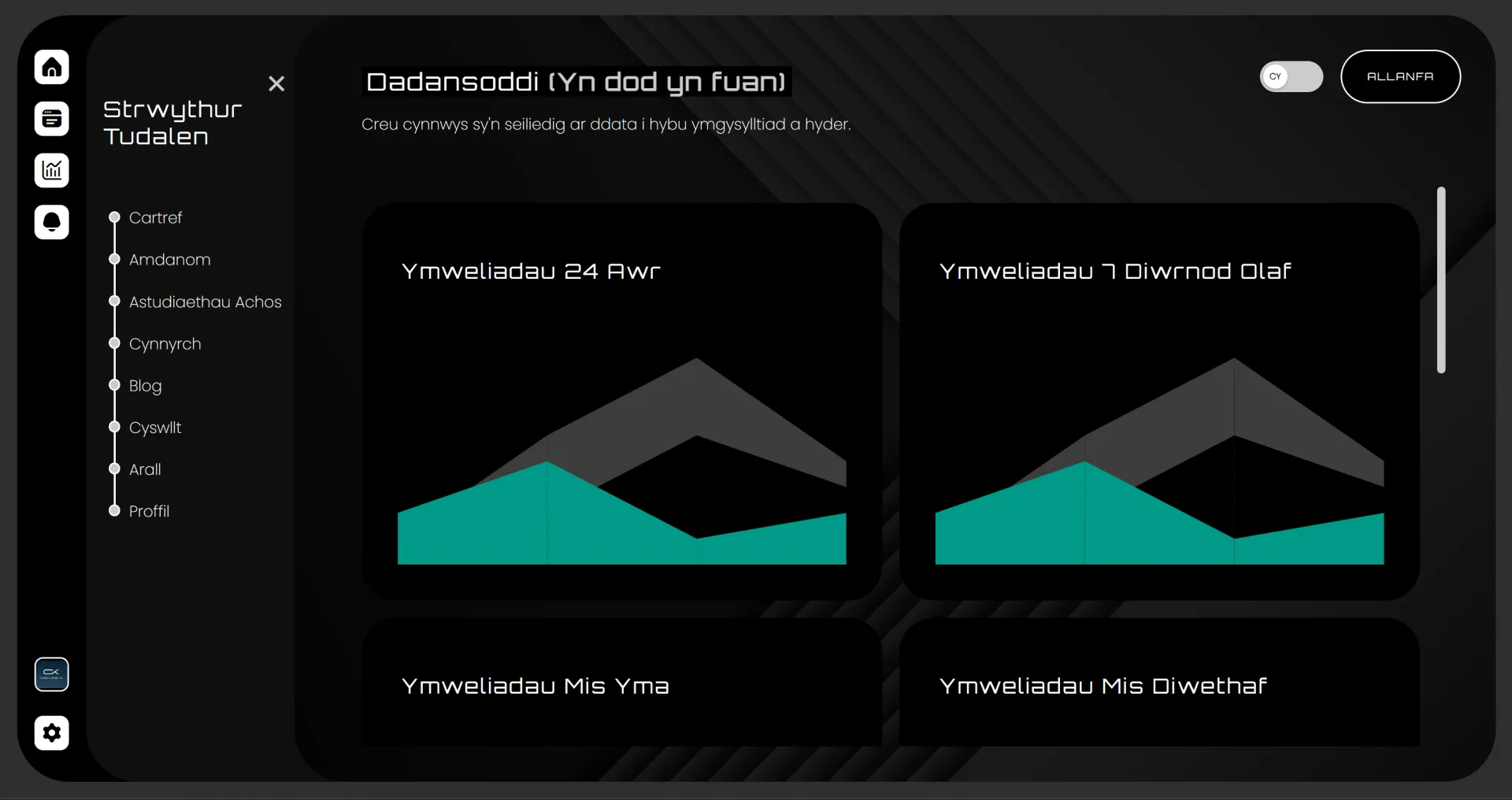 Mae ein system yn cynnig Mewngofnodi Llawn a Phroffiliau Defnyddwyr. Mae mewngofnodi’n sicrhau sefydlu llyfn, tra bod proffiliau’n galluogi creu erthyglau a hyrwyddo staff i ddefnyddwyr.